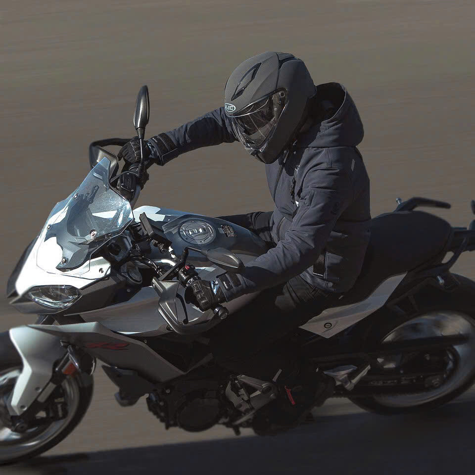 Khi dùng áo, anh em nhớ tháo thẻ phụ kiện ở tay trái trước khi chạy xe để tránh vướng víu. Áo còn có dây chống rung trên mui, hỗ trợ giữ form tốt khi chạy gió lớn và tăng cảm giác thoải mái khi điều khiển xe.